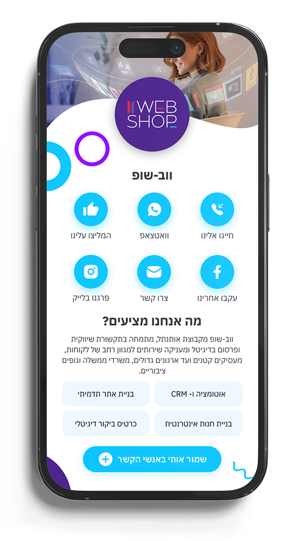 אנחנו מעצבים, המפתחים מטמיעים — ואתה מקבל כרטיס דיגיטלי מוכן ומרשים.